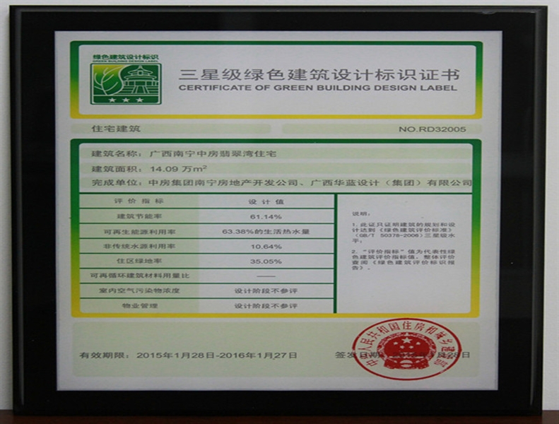 • 翡翠灣榮獲三星級綠色建筑設(shè)計標識證書