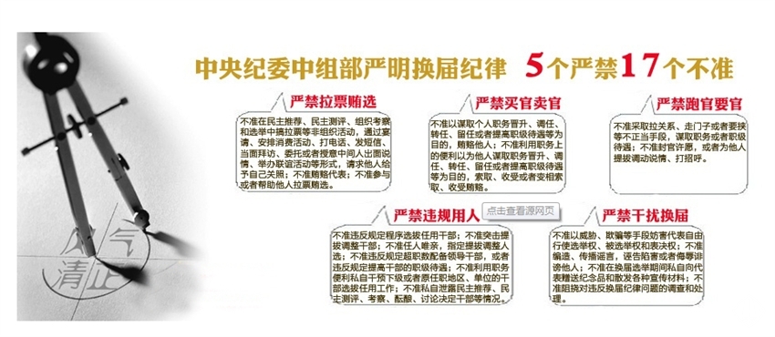 嚴(yán)禁拉票賄選、嚴(yán)禁買官賣官、嚴(yán)禁跑官要官、嚴(yán)禁違規(guī)用人、嚴(yán)禁干擾換屆